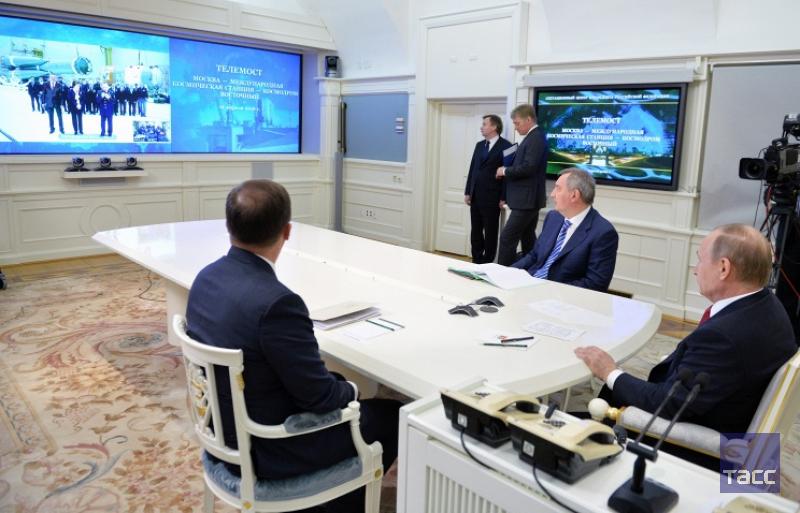 Русские смотрят, как Президент России проводит сеанс связи с экипажем МКС: